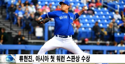 [½Åµ¿¾Æ¹æ¼Û½ºÆ÷Ã÷´º½º=Á¶»ó½Ä ±âÀÚ] ·ùÇöÁø(33¡¤Åä·ÐÅä ºí·çÁ¦À̽º)ÀÌ ¾Æ½Ã¾Æ ¼±¼ö·Î´Â óÀ½À¸·Î ¸ÞÀÌÀú¸®±×(MLB) ÃÖ°í Á¿ÏÅõ¼ö¿¡°Ô µ¹¾Æ°¡´Â ¡®¿ö·± ½ºÆÇ»ó¡¯À» ¹Þ´Â´Ù.
