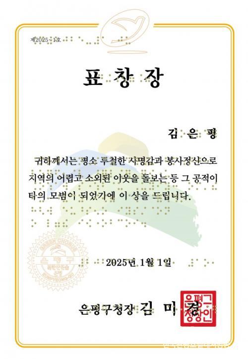 ±è¹Ì°æ ÀºÆò±¸Ã»ÀåÀº ¡°Ç¥Ã¢ÀåÀº ´Ü¼øÈ÷ Á¾ÀÌ ÇÑ Àå¿¡ ºÒ°úÇÑ °ÍÀÌ ¾Æ´Ñ »çȸÀÇ °¨»ç¿Í Á¸ÁßÀÇ »ó¡ÀÌ´Ù¡±¸ç ¡°Á¡ÀÚ¡¤¿Ü±¹¾î ǥâÀå µµÀÔÀ¸·Î ¸ðµç ¼ö»óÀÚ°¡ ¼ö»óÀÇ Àǹ̸¦ ¿ÂÀüÈ÷ ´À³¢°í, ÀÚ±à½ÉÀ» ´À³¥ ¼ö Àֱ⸦ ¹Ù¶õ´Ù. ¾ÕÀ¸·Îµµ ÀºÆò±¸´Â ´Ù¾ç¼º°ú Æ÷¿ë¼ºÀ» ¹ÙÅÁÀ¸·Î ÇÑ ÇàÁ¤ ¼­ºñ½º¸¦ È®´ëÇϰڴ١±°í ¸»Çß´Ù.
